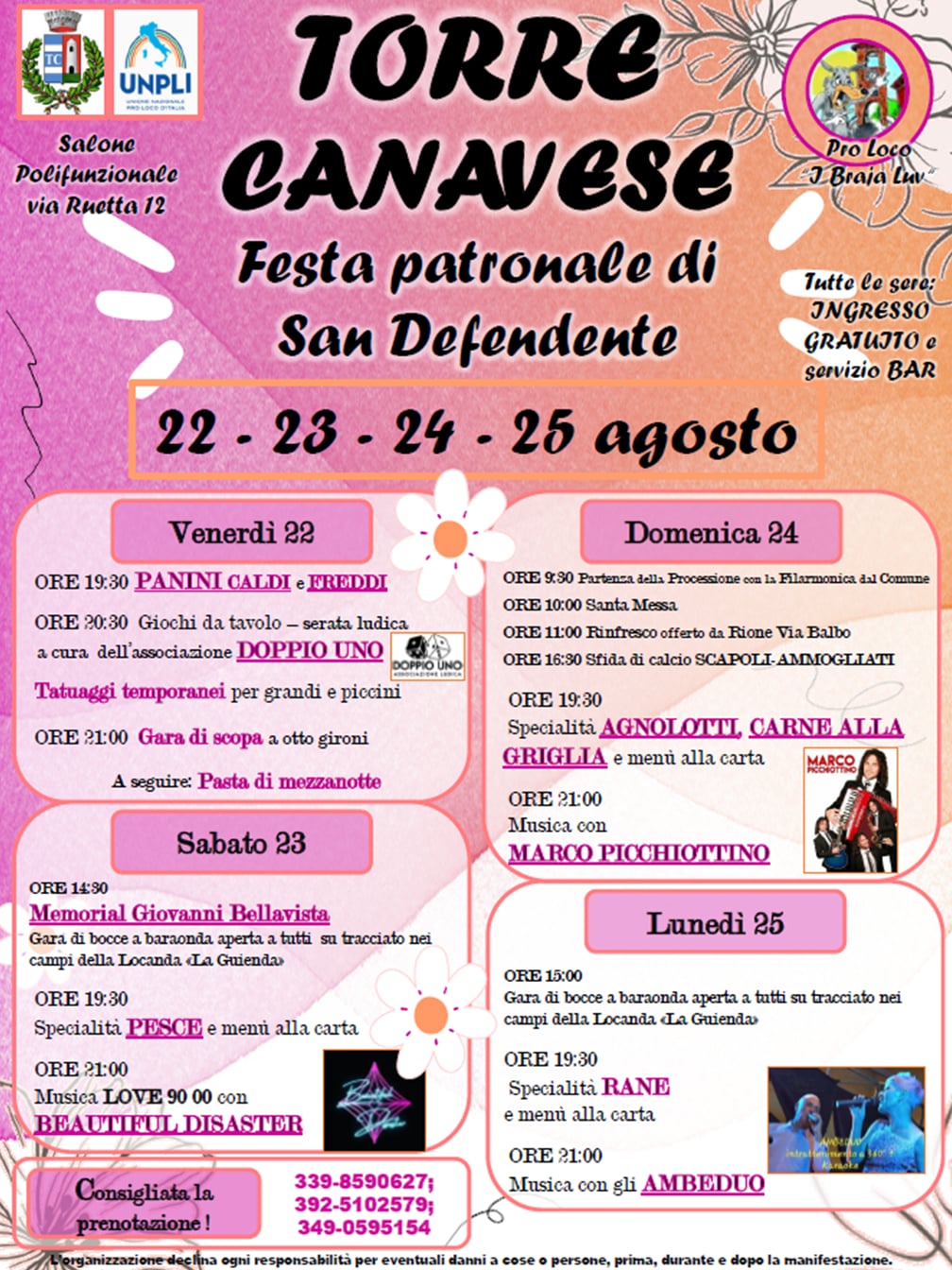 Apertura stand gastronomico alle 19.00 al parco della Torre. Asporto disponibile dalle ore 18.30 alle ore 19.30.